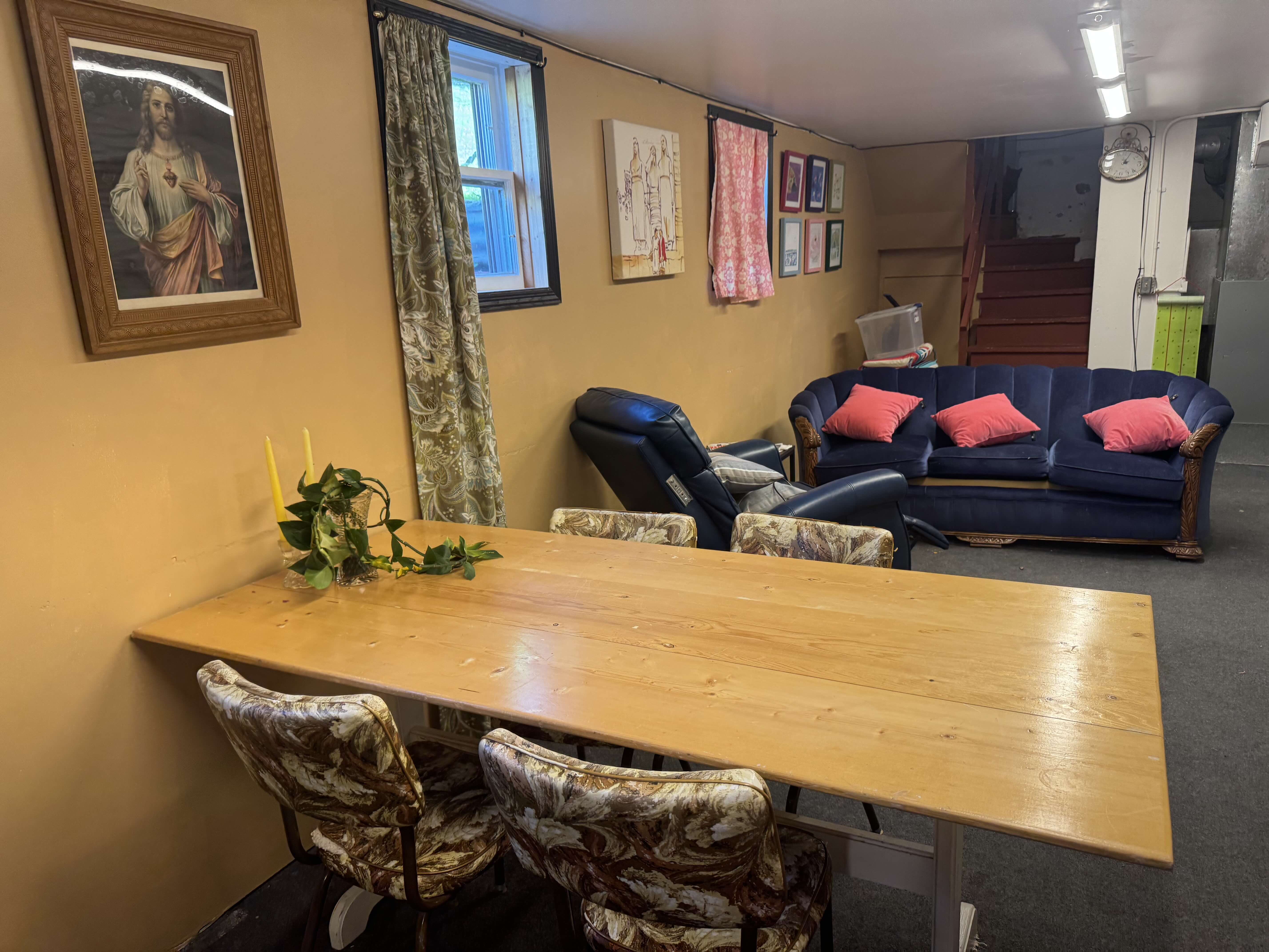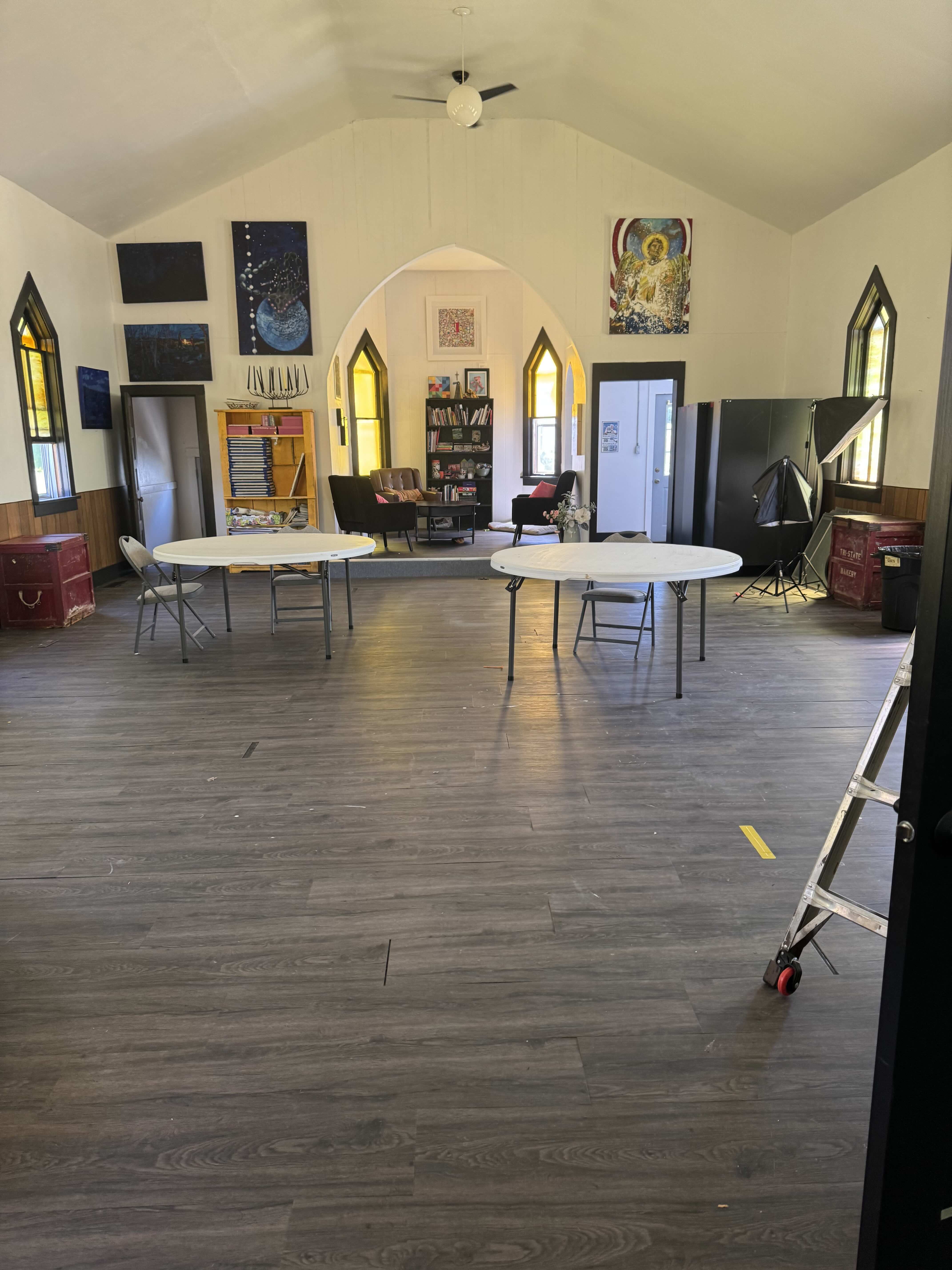 Creative souls, road trippers, and practical travelers — welcome to your Belle Fourche basecamp. This little jewel box of a 1932 church-turned-studio is full of charm, quirks, and plenty of heart. You’ll find tall ceilings, stained glass, scattered paint flecks, vintage furniture, and a “make-yourself-at-home” energy that doesn’t mind a little mud on your boots. It’s not fancy — and that’s the point. • - Sleeps 5+ in 3 lower-level rooms + flexible upstairs • - Dogs welcome | small yard | front & back stairs • - ADA-compliant main floor bathroom • - Kitchen, washer/dryer, and a narrow but working shower • - Perfect for artists, writers, families, and folks who just need space, light, and a good night’s sleep 🖼 About the Space: Main Hall – Think church bones with studio soul: stained-glass windows, round tables for group meals or projects, a cozy library nook in the altar space, and big wall art from past workshops. It's functional, flexible, and full of stories. Bedrooms (Downstairs) – Three former prayer/daycare rooms with modest furniture and real beds. Nothing fancy, but warm and private. Bathrooms – ADA-compliant restroom upstairs with a touch of art gallery charm. A basic but clean downstairs bathroom includes a shower. Kitchen & Laundry – Simple, stocked, and easy to use. 🛏 Sleeping Setup: • - 3 lower-level bedrooms (each fits 1–2) • - Additional bed(s) available upstairs upon request • - Bedding and towels provided 💡 Why You Might Love It: • - You’re low-key and low-maintenance • - You love spaces with soul over polish • - You’re passing through or posting up for a project • - You don’t mind a little creak, character, or chipped paint if the vibe’s good 📍 Location: Nestled in Belle Fourche with walkable access to town and a short drive to the Black Hills. Park out front, bring the dog, and settle in. 🏍️ Rally Riders & Motorcyclists Welcome! Easy parking, flexible space, and dog-friendly accommodations make this a great base camp during the rally season or a scenic stop on your road trip. • - 20 miles to Sturgis (about 25 minutes) • - 60 miles to Devils Tower (about 1 hour, scenic ride) 💵 Rates & Availability • - $2300 per week • - Deposit required • - Available: July 11 – August 31